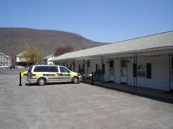When the police chief's patrol car was out of sight, Joel spoke in a serious voice to the motel owner as he was securing the crime scene.