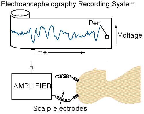 | Quantitative EEG (QEEG) is digital recording of the EEG. For decades it was only possible to record the various brain waves on paper with the traditional polygraph. The EEG rhythms were amplified and used to drive pens, one for each recording electrode. As the pens fluctuated from the EEG rhythms, a long piece of graph paper was dragged under the pens by a motor, creating the graph of the electrical activity on the outer surface of the brain.