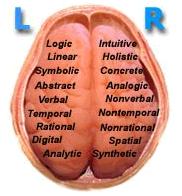 The left and right hemispheres of our brains appear to produce different brain functions. The left hemisphere is active in linear, logical, practical, and time orientated activities while the right hemisphere seems to be much more non-linear, abstract, creative, wholistic, and non-logical.