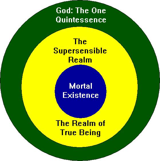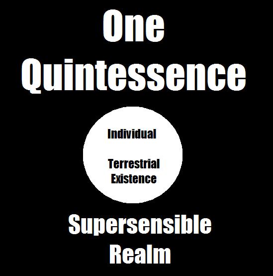 God, the Creator, the One Quintessence, is beyond being or non-being, since this Ultimate Reality created being and existence. The realm of mortal existence is within the realm of true being and within the reality of God, the One Quintessence.